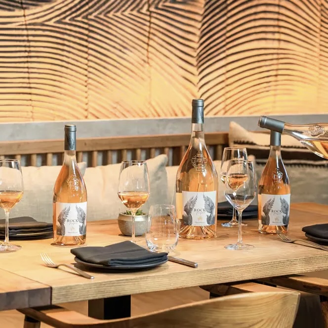 Rock Angel d’Esclans a complex Provencal rosé made with a balanced flavor of peaches, berries, and floral notes with a creamy texture and mineral finish from partial oak aging.